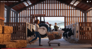 “Farmed with care, that’s the Red Tractor way. A label to trust, found on food every day. This promise is kept by the checks put in place, to care for our animals with the right food and space. Our cows have a health plan, and a personal vet, from field to store all our standards are met. When the Red Tractor’s there, your food’s farmed with care”.